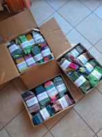 Zwischen Oktober und März entstanden in den Ortsvereinen fast 400 Paar liebevoll gestrickte, farbenfrohe Socken, die nun ihren Weg zu Frauen finden, die eine schwere Zeit durchleben. Der Wunsch, diese Mutmacher direkt in unserem Einzugsgebiet zu verschenken, wurde im Laufe des Winters immer wieder an uns herangetragen – und wir haben ihn sehr gern aufgegriffen.