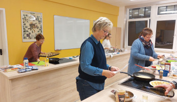 Die Teilnehmerinnen bereiteten in kleinen Teams oder alleine abwechslungsreiche Gerichte zu – von herzhaften Snacks bis hin zu raffinierten Köstlichkeiten. Dabei durfte natürlich die passende Weinbegleitung nicht fehlen: Eine feine Auswahl erlesener Weine rundete das kulinarische Erlebnis perfekt ab.