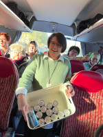 Zwischen den Buchvorstellungen konnten sich die Gäste an kleinen Leckereien erfreuen. Diese wurden nach Rezepten aus dem Kochbuch "Nachhaltig kochen unter 1€" zubereitet und von Frau Steenken serviert, die uns in diesem Jahr zum letzten Mal mit ihren Köstlichkeiten verwöhnte. Zum Glück haben sich bereits Nachfolgerinnen gefunden, die diese schöne Tradition weiterführen werden.
