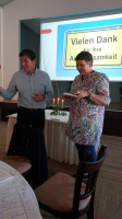 Deshalb ging während der Veranstaltung unser Sparschwein reihum, und es kam eine große Summe zusammen, die wir dem Verein für seine wertvolle Arbeit übergeben konnten.