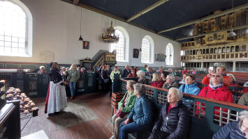 Erster Programmpunkt war ein Besuch in der alten Kirche von Jork. In ihrem Inneren erzählte Sabine eindrucksvoll über die lange Geschichte des Gotteshauses, die Seemannstraditionen der Region und die besondere Verbindung der Menschen zur Elbe.