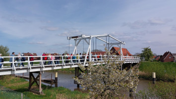 Ein besonderer Moment war der Spaziergang auf dem Lühedeich in Steinkirchen. Von dort hatten wir einen herrlichen Blick auf die historische Hogendiekbrücke. Weiter ging es zum Lühe-Fähranleger, wo wir bis nach Hamburg auf die Elbe schauen konnten – ein eindrucksvoller Ausblick.