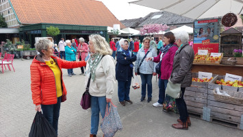 Nach einem gemeinsamen Mittagessen im stilvollen "Hotel Altes Land" starteten wir zu einer Busrundfahrt durch die Region. Sabine zeigte uns die wunderschöne Landschaft mit ihren gepflegten Altländer Höfen, den blühenden Plantagen und den typischen Reetdachhäusern.