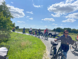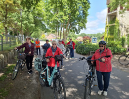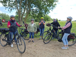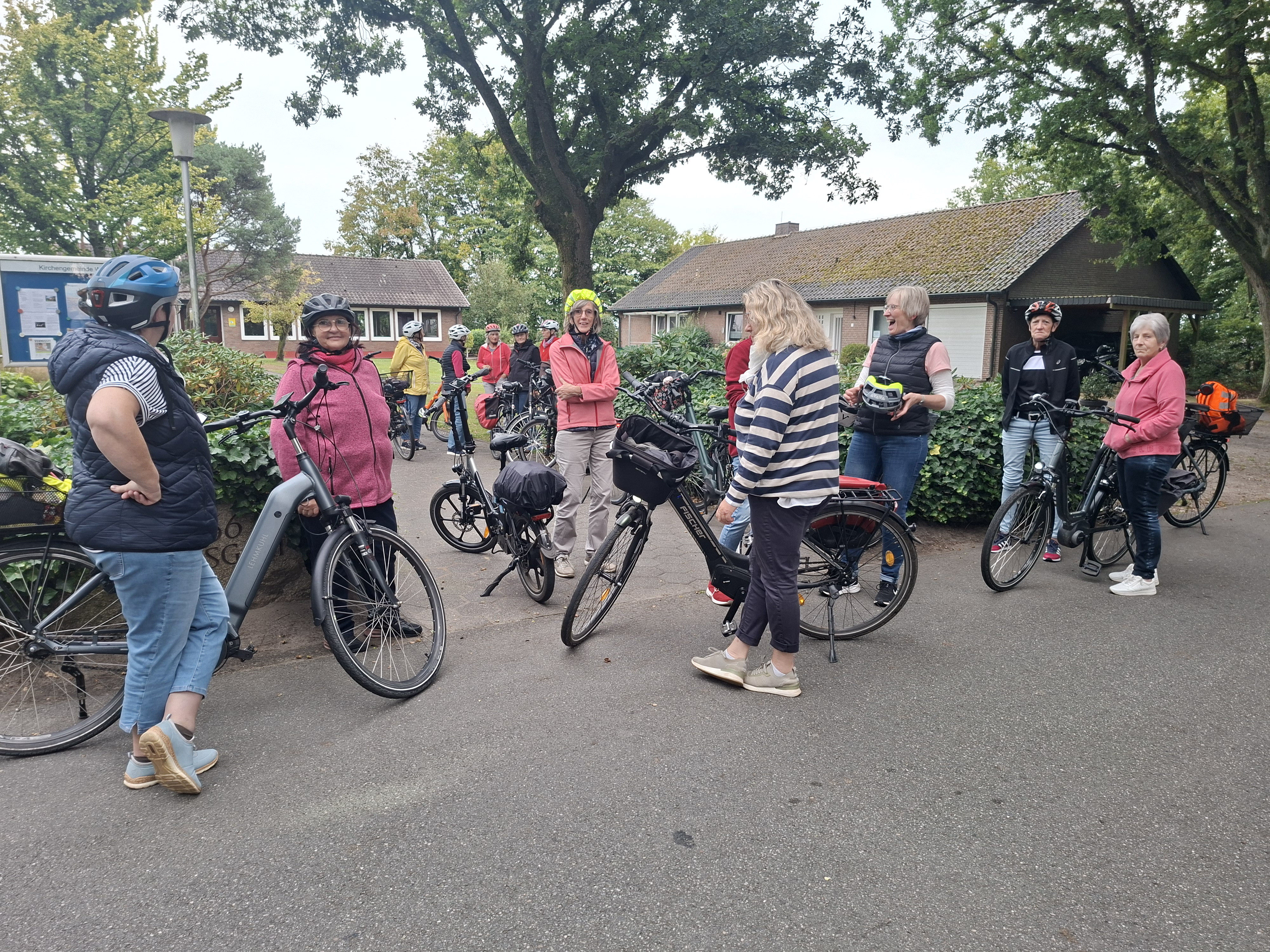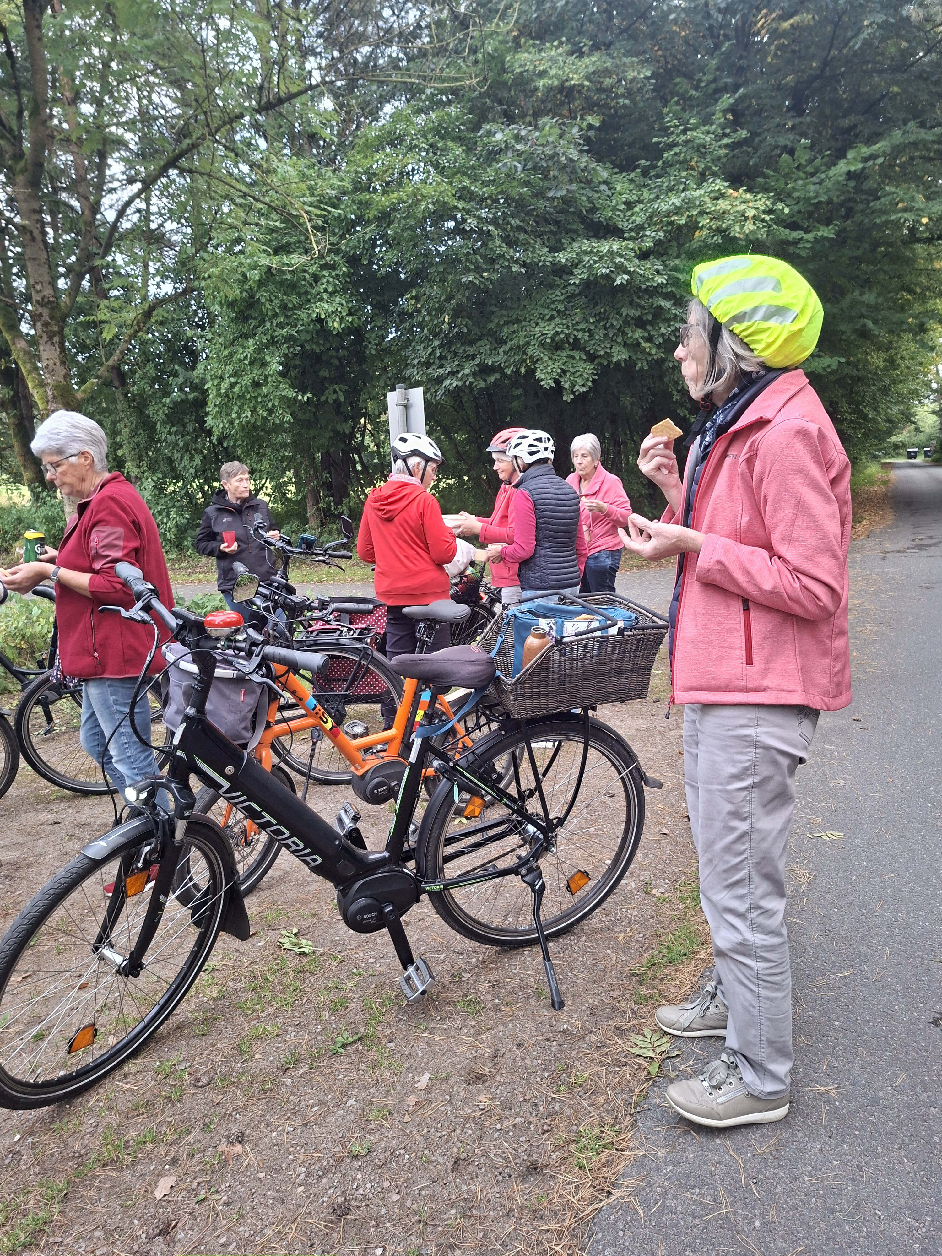Treffpunkt war die Kirche in Wallhöfen. Von dort aus machten sich zwei Gruppen auf den Weg und radelten auf idyllischen Wegen durch Verlüßmoor und Bornreiche bis zum Sperrwerk in Viehspecken. Dort trafen sich alle wieder zu einer gemütlichen Pause, bei der Zeit für Gespräche und kleine Stärkungen blieb.