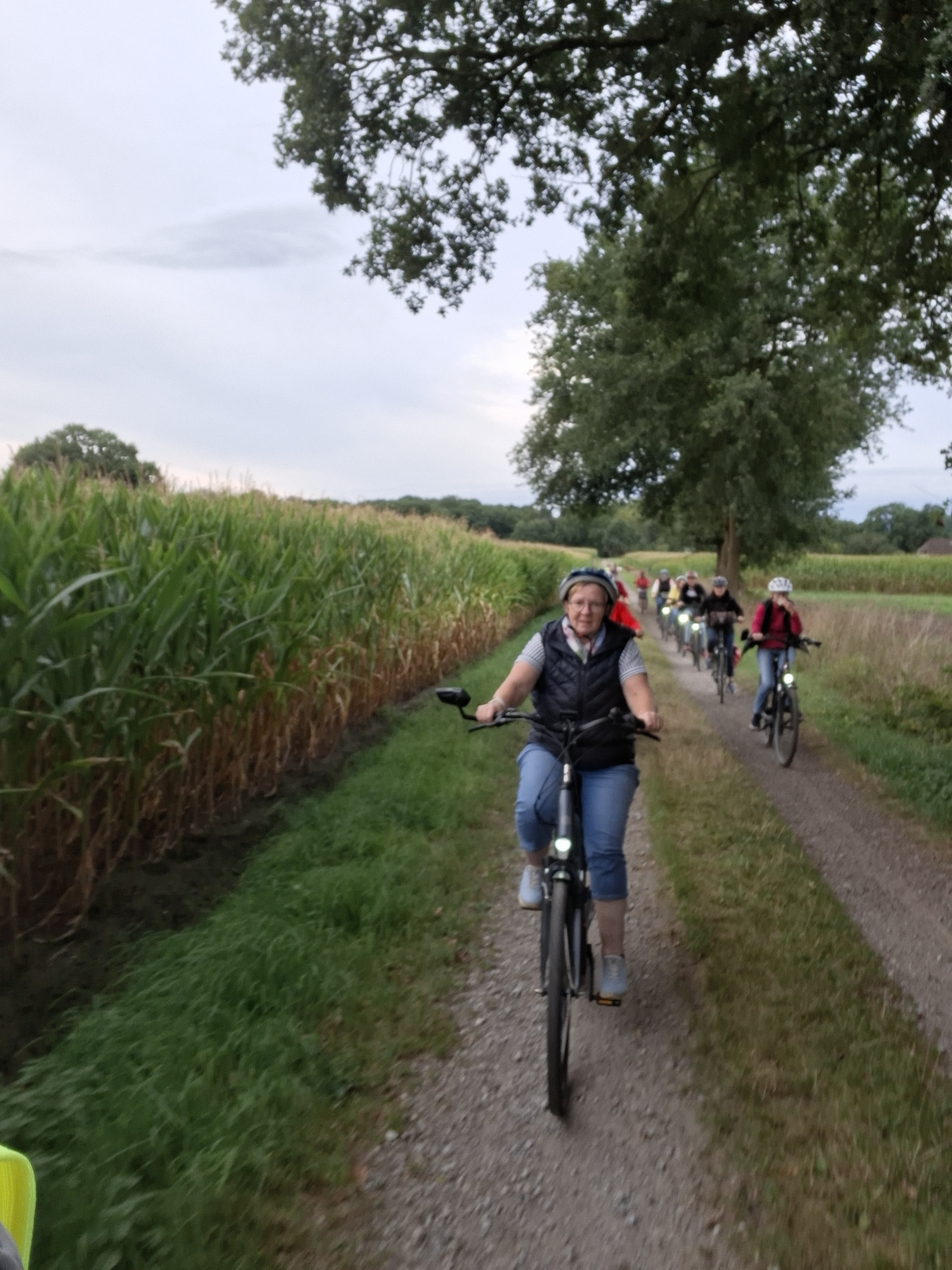 Beim zweiten Termin starteten wir an der Kirche in Wallhöfen. Die entspannte Route führte uns über Vollersode zum Golfplatz nach Giehlermühlen. Dort legten wir zwar keine Golfrunde ein, sondern gönnten uns eine kurze Pause und beobachteten die Golfer beim Abschlag. Weiter ging es durch Paddewisch, den Stedener Wald, weiter nach Lübberstedt und schließlich zurück nach Hambergen, wo die Feierabendradtour ihren schönen Abschluss fand.