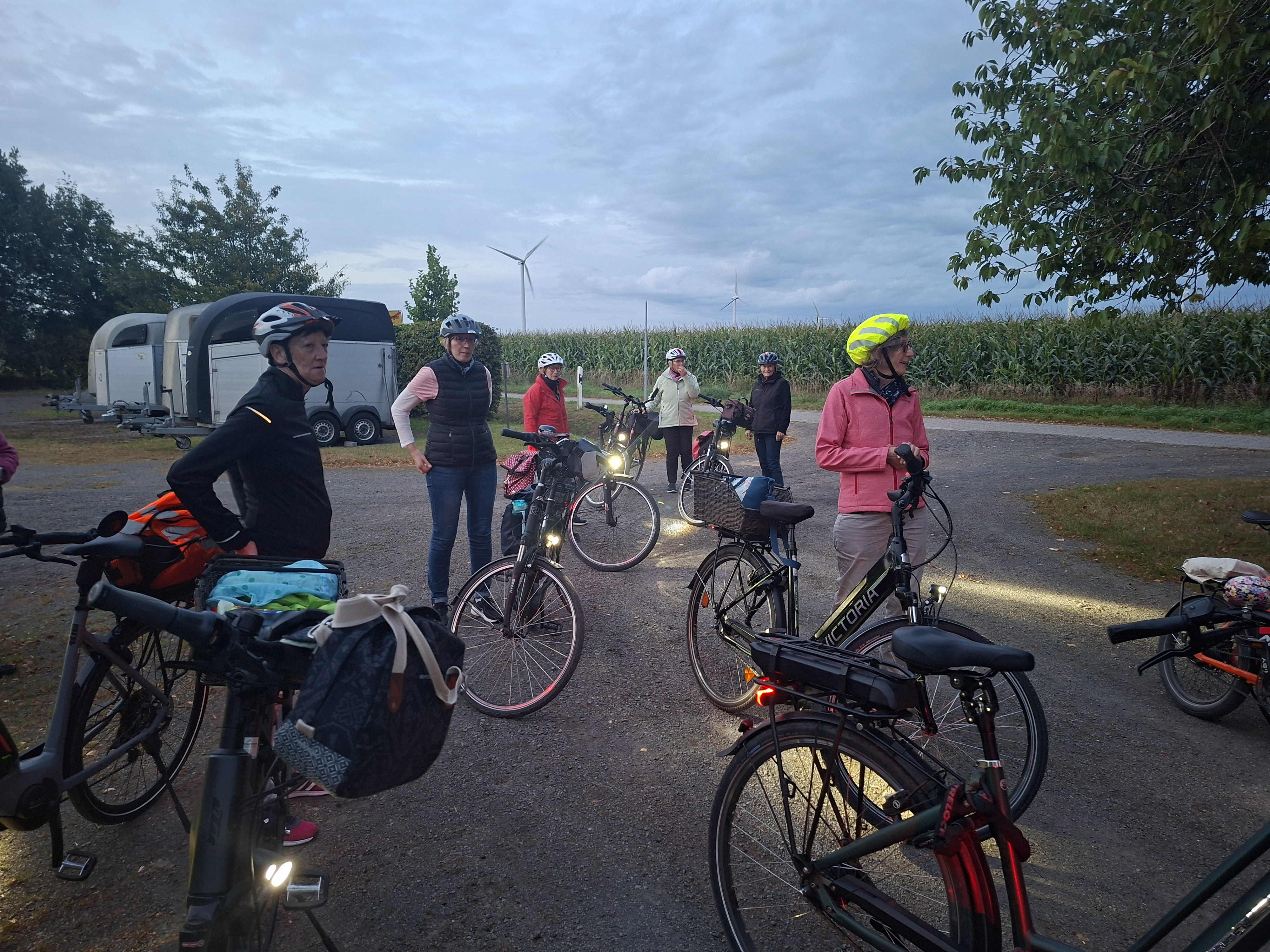 Am ersten Abend begann unsere Tour am Hundeplatz im Schrum. Von dort aus fuhren wir gemütlich über kleine Straßen und Wege nach Ohlenstedt, durch den Garlstedter Wald bis nach Hülseberg. In Freißenbüttel wartete unser Vereinsheim als Pauseort: Wir stärkten uns mit Leckereien, ließen es uns schmecken und genossen viel Gelächter in netter Runde. Danach ging es entspannt zurück nach Hambergen – eine Runde, die Spaß machte und uns alle gut in den Abend führte.