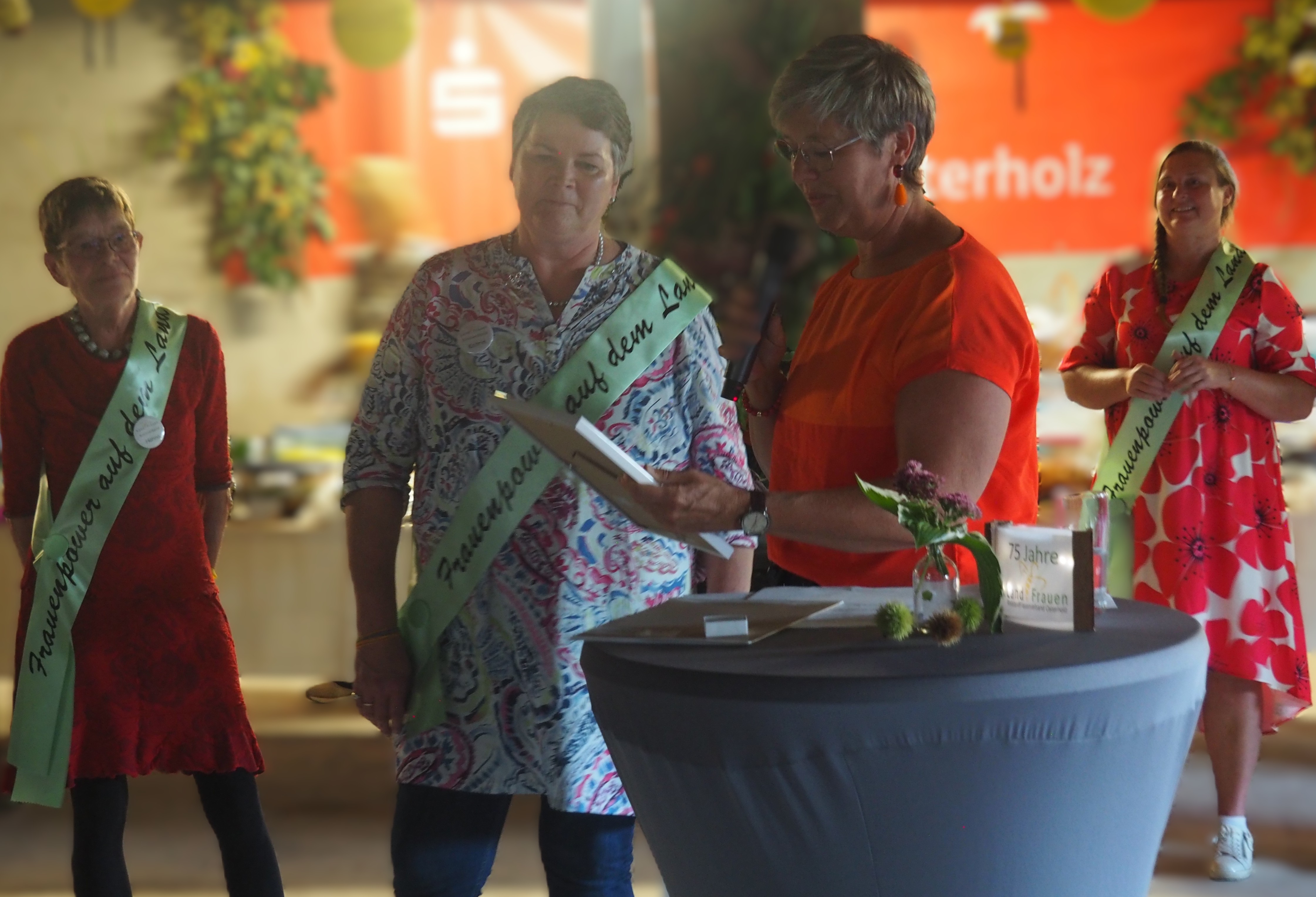 Im Rahmen der Feier zum 75-jährigen Jubiläum des KreislandFrauenVerbands Osterholz, dessen Vorsitzende Katrin ebenfalls ist, wurde ihr dieses besondere Ehrenzeichen durch die NLV-Präsidentin Elisabeth Brunkhorst verliehen. Elisabeth Brunkhorst würdigte Katrins herausragendes Engagement für die Landfrauenarbeit. Katrin ist eine wahre Bereicherung für unseren Verein: Sie zeichnet sich durch ihre stets positive Einstellung, ihr offenes Ohr für alle Mitglieder und ihre Fähigkeit aus, das Ruder fest in der Hand zu behalten. Mit ihrer umsichtigen und kreativen Art setzt sie kontinuierlich Impulse zur Weiterentwicklung unseres Vereins.