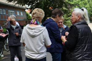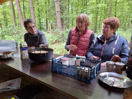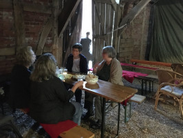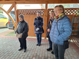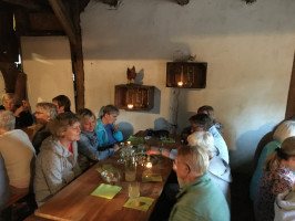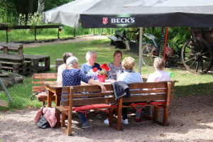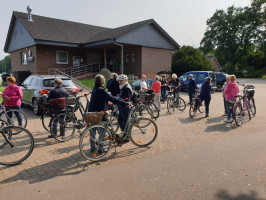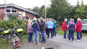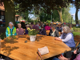 Anschließend ging es weiter durch die Feldmark nach Waakhausen. nach der Besichtigung der Tiny-Häuser und den Baumhäusern fuhren wir zu Melcher's Hütte um uns vor der Heimfahrt mit Kaffee und Kuchen zu stärken.
