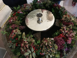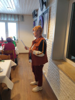 Wir haben mit netter Akkordeonbegleitung Weihnachtslieder gesungen und ein junges Mädchen zeigte uns ihre Begabung an der Harfe.