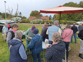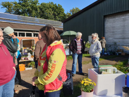 Trotz kühler Luft aber manchmal auch Sonnenschein, wechselten so einige Pflanzen ihr zuhause. Bei Kaffee und Butterkuchen wurde gefachsimpelt, wie man zum Beispiel am besten die Dahlien durch den Winter bekommt. Es wurden selbstgemachten Marmeladen probiert und auch der Klötenköm wechselte den Besitzer.