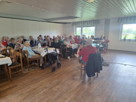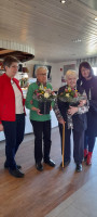 Jonny Glut begleitete uns durch den Nachmittag. Erika Jantzen ließ die 6o Jahre Revue passieren und ehrte die Gründungsdamen Ilse Blendermann und Käte Tietjen, sowie Marianne Rajes und Liane Barg. Sie bekamen einen wundervollen Blumenstrauß. Das Team vom Vereinsheim versorgte uns mit leckerem Buffet sowie Kaffee und Kuchen. Die Interessengemeinschaft CurleyM Linedance tanzte für uns.