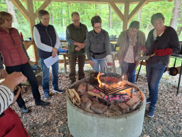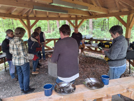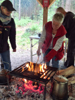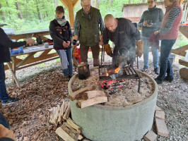 Am 03. Mai führten uns Sabrina und ihr Partner durch den 5-stündigen Einsteigerkurs. Wir wurden in die Welt des Lagerfeuerkochens eingeweiht. Wir lernten Cowboy-Kaffee zu kochen - ohne Filter und trotzdem ohne "Dickes" in der Tasse. Der Buchweizenpfannkuchen mit Speck kam auch super bei den Teilnehmern an. Wir lernten viel über Feuer und was man wo im Feuer platziert zum Garen. Voller neuer Ideen und gut gefülltem Magen fuhren wir nach Hause. Wir werden sicherlich das eine oder andere an der Feuerschale ausprobieren.
