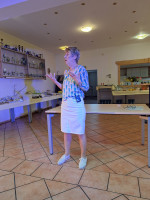 Sie stellte mit uns eine Johanniskrautsalbe vor Ort her, jeder bekam davon eine kleine Probe mit nach Hause. Die Salbe hilft bei ganz vielen Beschwerden wirkt stark entzündungshemmend, schmerzlindernd, antibakteriell usw.