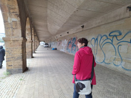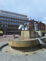 Treffpunkt war der Neptunbrunnen, er empfing uns im Regen mit Sturmböen.