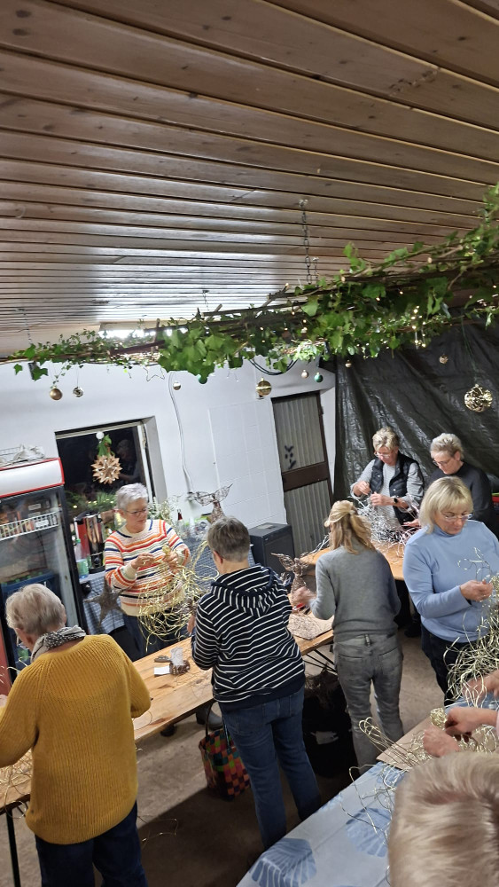Am 12.11.2025 haben wir uns kreativ auf die Vorweihnachtszeit eingestimmt. Es wurden aus Tanne und Naturmaterialien Wichtel, Kränze und Gestecke gefertigt. aus Raysin wurden kleine weihnachtliche Figuren gegossen. Für die kleine Stärkung zwischendurch hatte jeder eine Kleinigkeit für ein Fingerfoodbuffet mitgebracht. Es war wieder ein sehr schöner und geselliger Abend, mit netten Gesprächen.