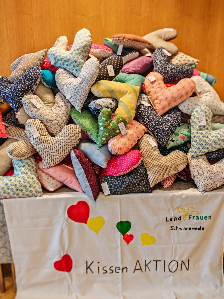In diesem Jahr fand unsere Herzkissenaktion am 10. und 11.10.2025 statt. wieder haben sich viele fleißige Landfrauen getroffen und über 220 Herzkissen für an Brustkrebs erkrankte Frauen zu nähen. Die fertigen Herzkissen wurden in diesem Jahr an das Klinikum St. Joseph Stift in Bremen gebracht. Die Pflegekräfte haben sich riesig über unsere Spende gefreut.