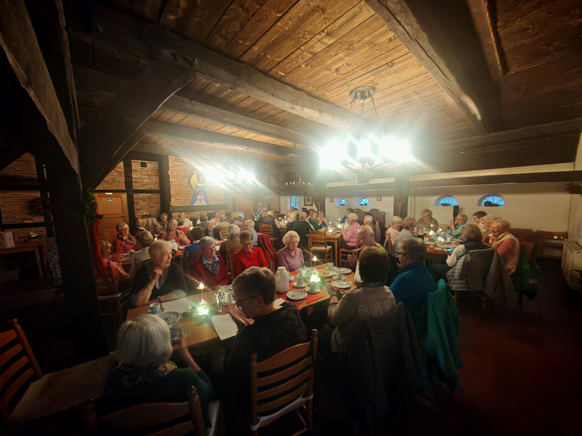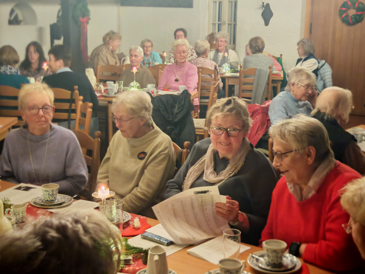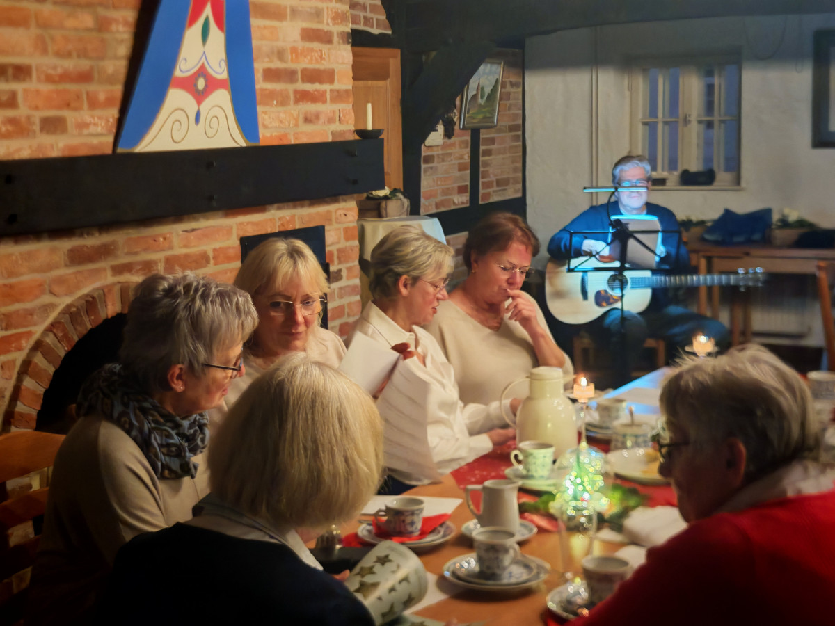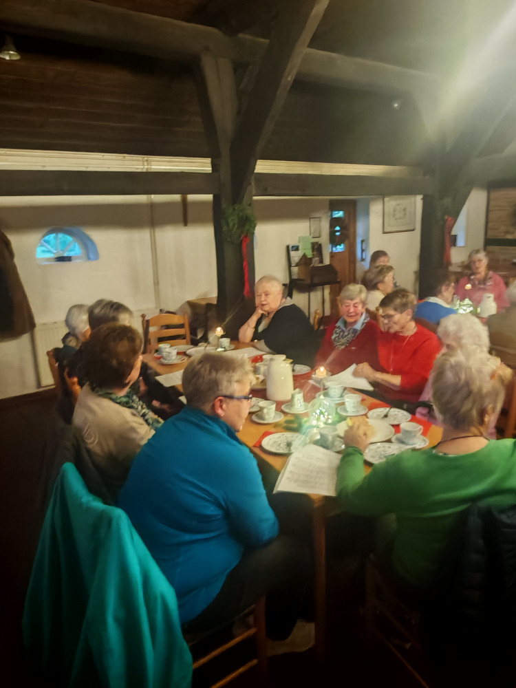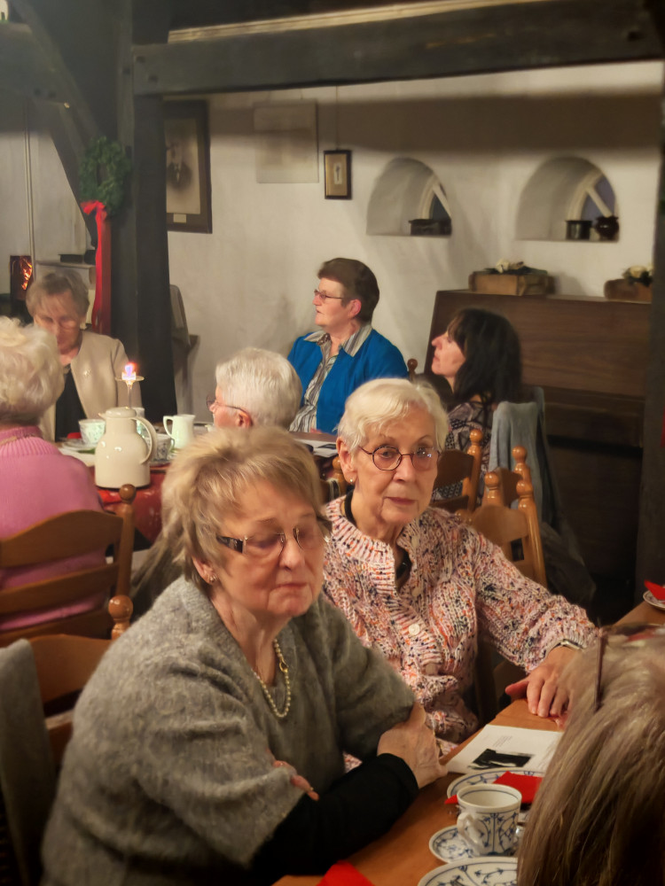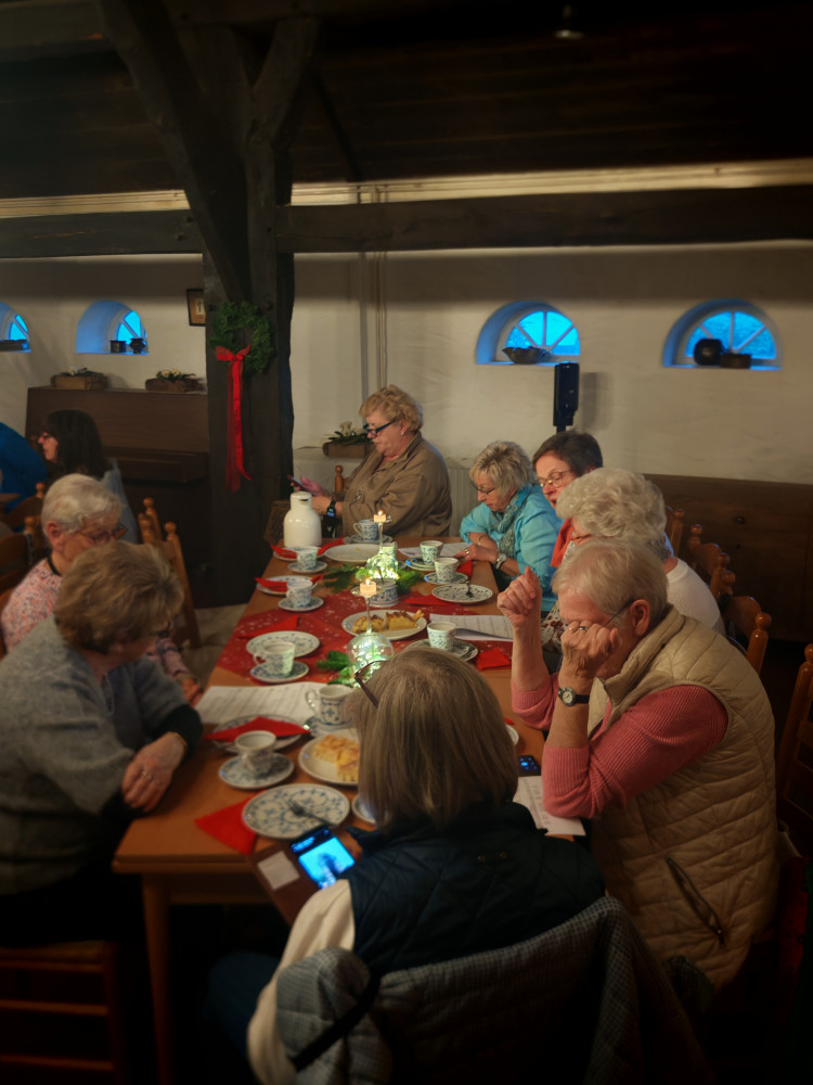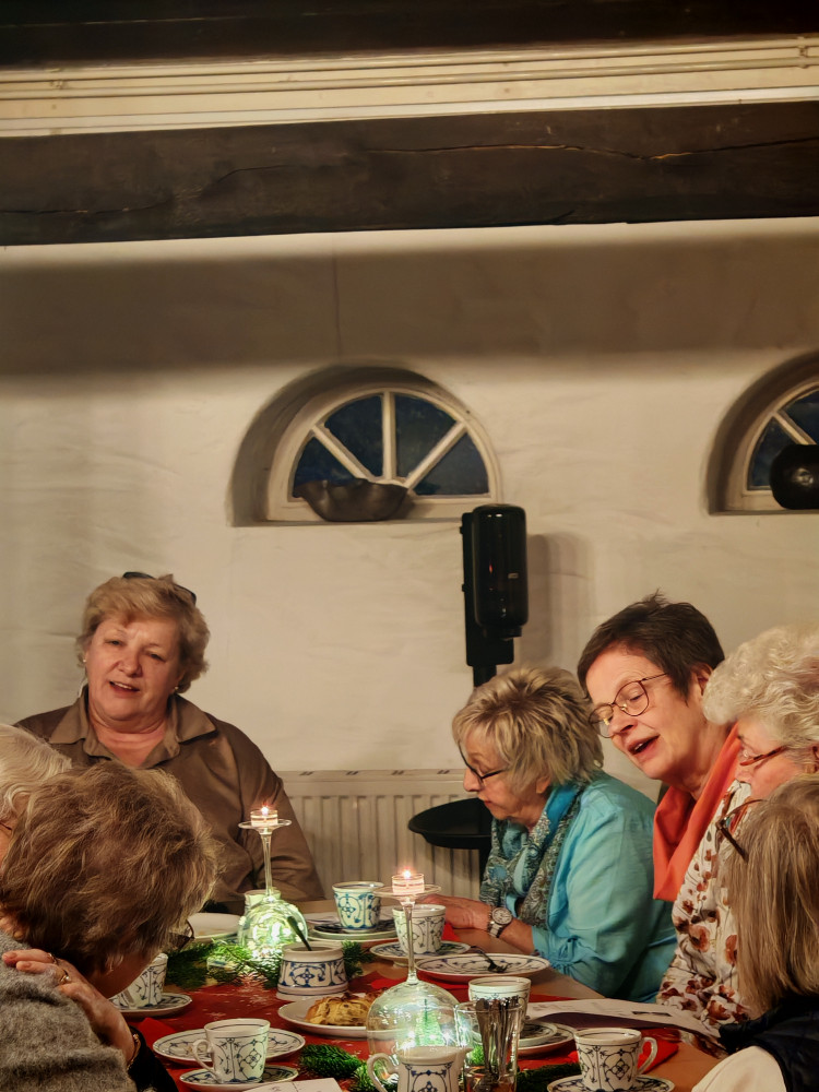 Am 09.12.2025 fand unsere diesjährige Weihnachtsfeier im Küsterhaus statt. Bei Kerzenschein, Kaffee ,Tee und Gebäck mit wunderschön dekorierten Tischen hatten wir einen sehr schönen Nachmittag. Frau Balzer hat uns mit weihnachtlich plattdeutschen Geschichten und Gedichten unterhalten. beim Weihnachtslieder singen wurden wir von Herrn Deicke mit der Gitarre begleitet.