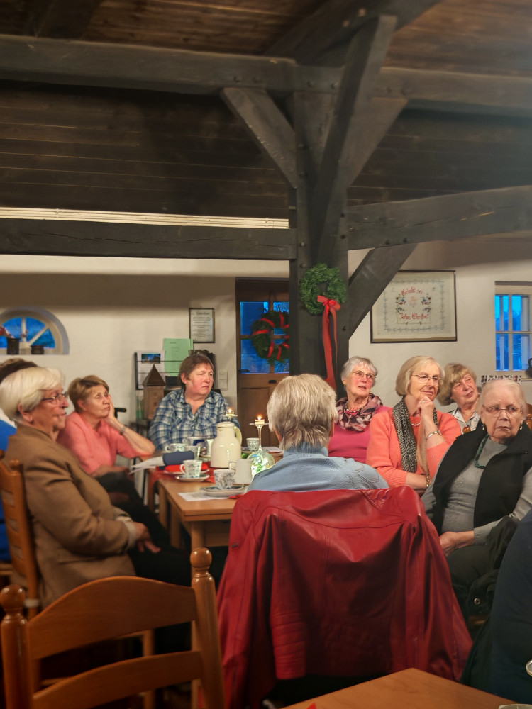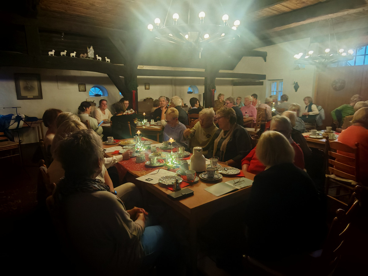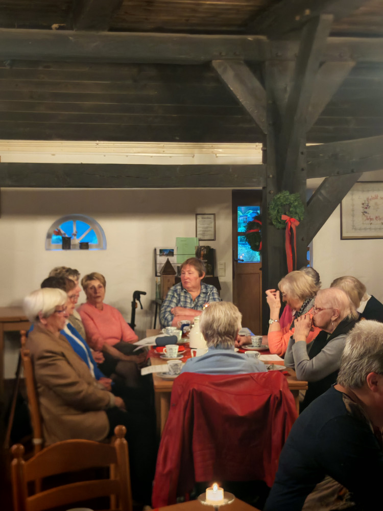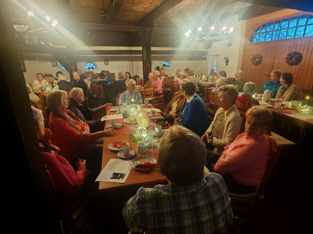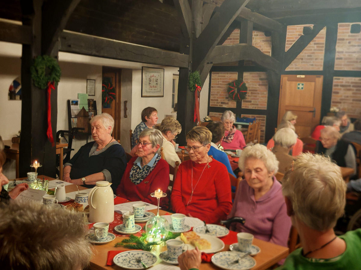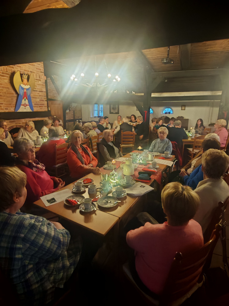 Am 09.12.2025 fand unsere diesjährige Weihnachtsfeier im Küsterhaus statt. Bei Kerzenschein, Kaffee ,Tee und Gebäck mit wunderschön dekorierten Tischen hatten wir einen sehr schönen Nachmittag. Frau Balzer hat uns mit weihnachtlich plattdeutschen Geschichten und Gedichten unterhalten. beim Weihnachtslieder singen wurden wir von Herrn Deicke mit der Gitarre begleitet.