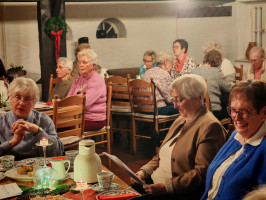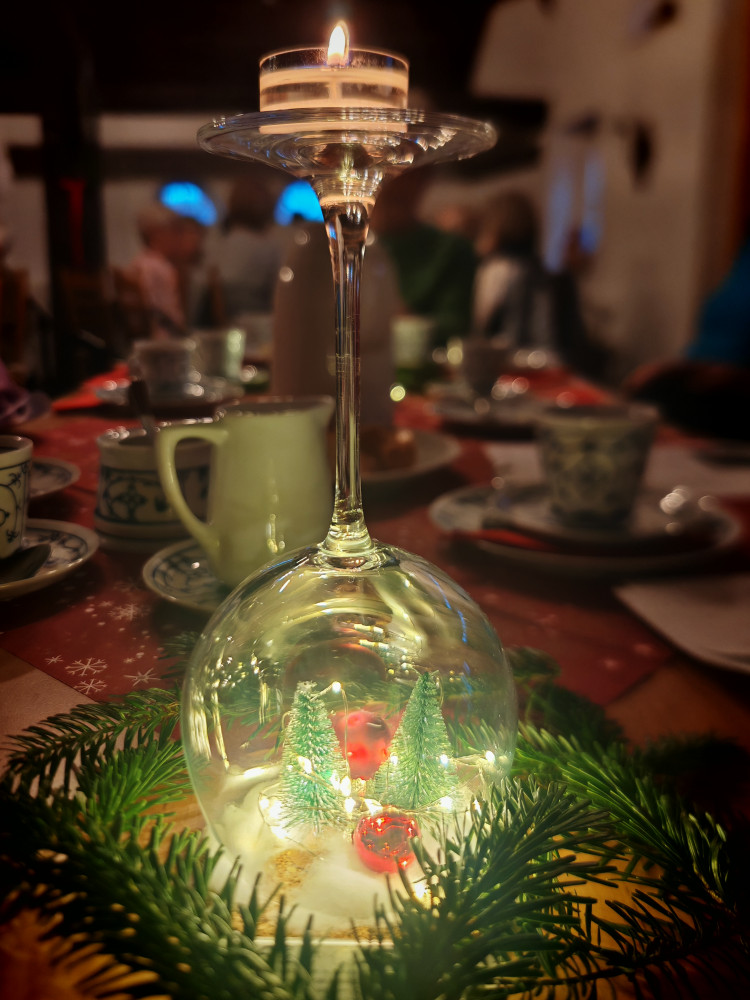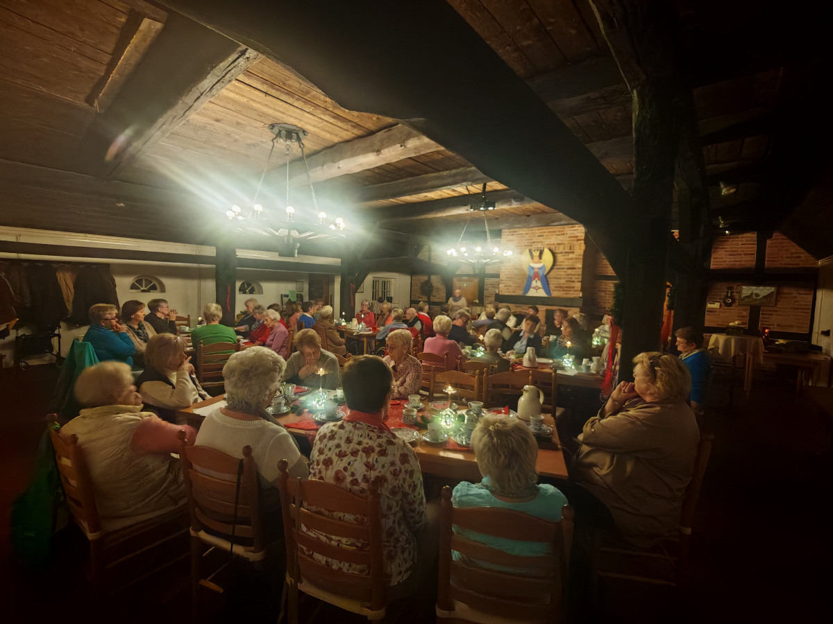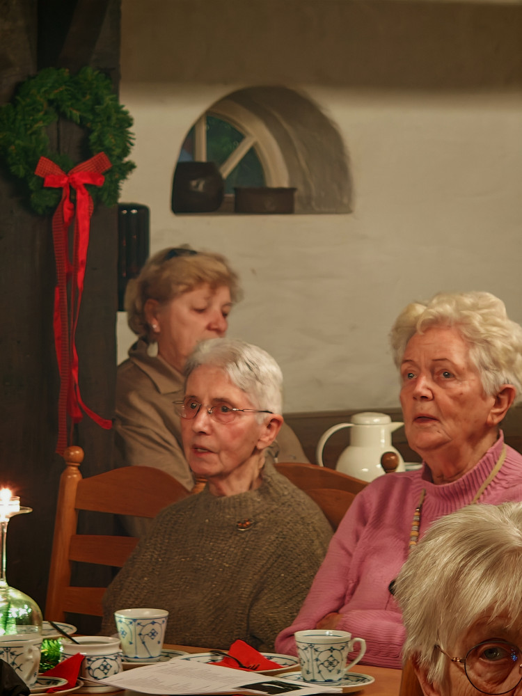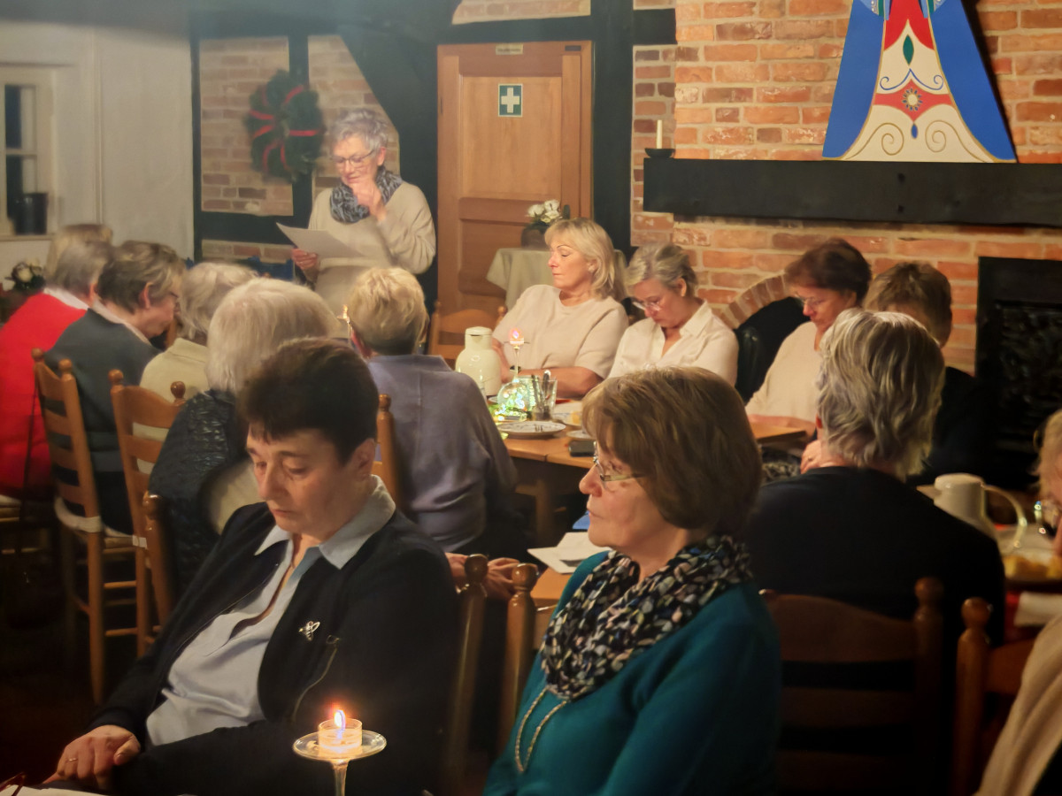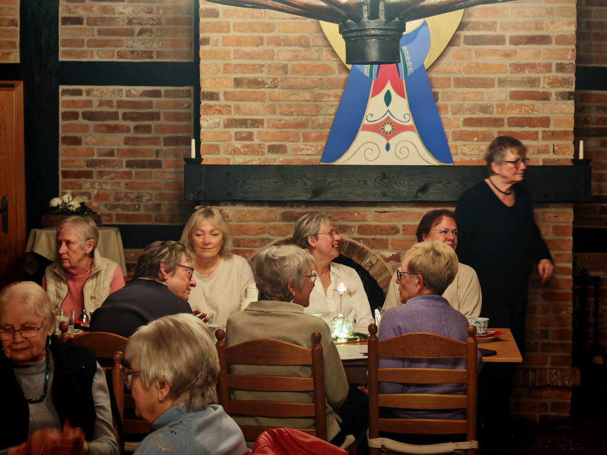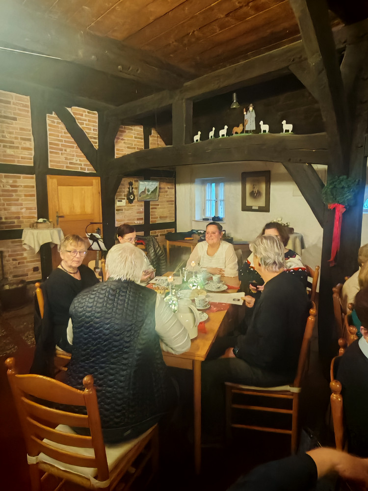 Am 09.12.2025 fand unsere diesjährige Weihnachtsfeier im Küsterhaus statt. Bei Kerzenschein, Kaffee ,Tee und Gebäck mit wunderschön dekorierten Tischen hatten wir einen sehr schönen Nachmittag. Frau Balzer hat uns mit weihnachtlich plattdeutschen Geschichten und Gedichten unterhalten. beim Weihnachtslieder singen wurden wir von Herrn Deicke mit der Gitarre begleitet.
