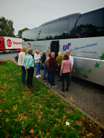 In diesem Jahr führte uns unsere Tagesfahrt auf die andere Weserseite. Am 13.06.2025 ging es um 08.00 Uhr ab dem Betriebshof von Rahden, bei schönstem Sonnenschein los, in Richtung Wesertunnel. Unser erster Halt war in Jever. Dort besuchten wir die Blaudruckerei und konnten bei einer sehr interessanten Handwerksvorführung, einen kleinen Einblick in das jahrhundertalte Handwerk der Blaudrucker- und Färberei bekommen. Danach ging es nach Varel. Im Restaurant "Aal & Krabbe" gab es für uns ein reichhaltiges und leckeres Fischbuffet. Nachdem wir uns alle gestärkt hatten, ging es weiter mit dem Bus in Richtung Oldenburg. Dort hatten wir den Nachmittag zur freien Verfügung, bis wir um 18.00 Uhr die Heimfahrt nach Schwanewede angetreten sind.