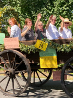 Unter dem Motto "Landfrauen, das sind wir" präsentierten die Landfrauen Stendorf u. Umgebung ihre unterschiedlichen Berufe auf ihrem bunt geschmückten Erntewagen beim Erntefest Umzug am 21. 08. 2022 in Lesumstotel/Werschenrege