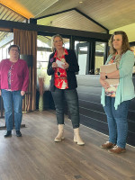 Am Ende der Versammlung bedankte sich Martina Rodenburg-Schade, Vorsitzende des Kreisverbandes OHZ, bei Ursel Rathjen für 12 Jahre und Ruth Mattfeldt für 6 Jahre Vorstandstätigkeit mit einer Urkunde des NLV Hannover, Blumen und einem Geschenk. Ursel Rathjen erhielt die „Silberne Biene mit grünem Stein“.